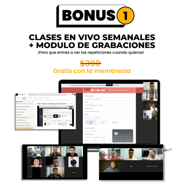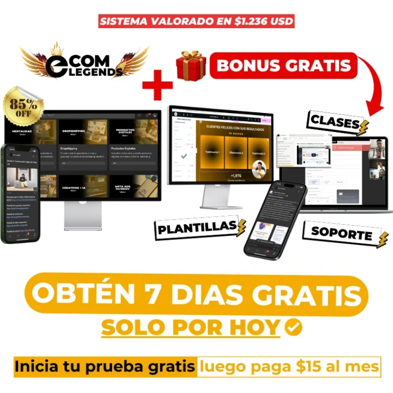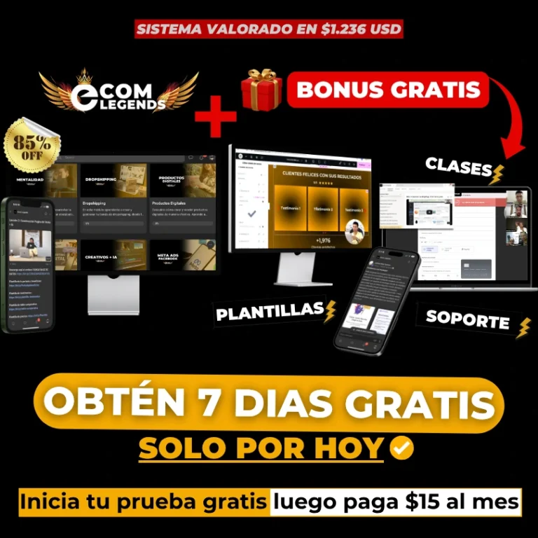 - Acceso a todos los módulos (dropshipping, Productos digitales, Meta Ads, IA, etc.).